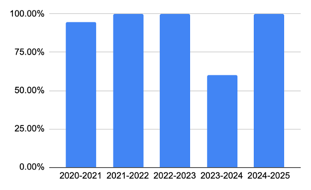 | 2024-2025 | 62.50% | 8 |
